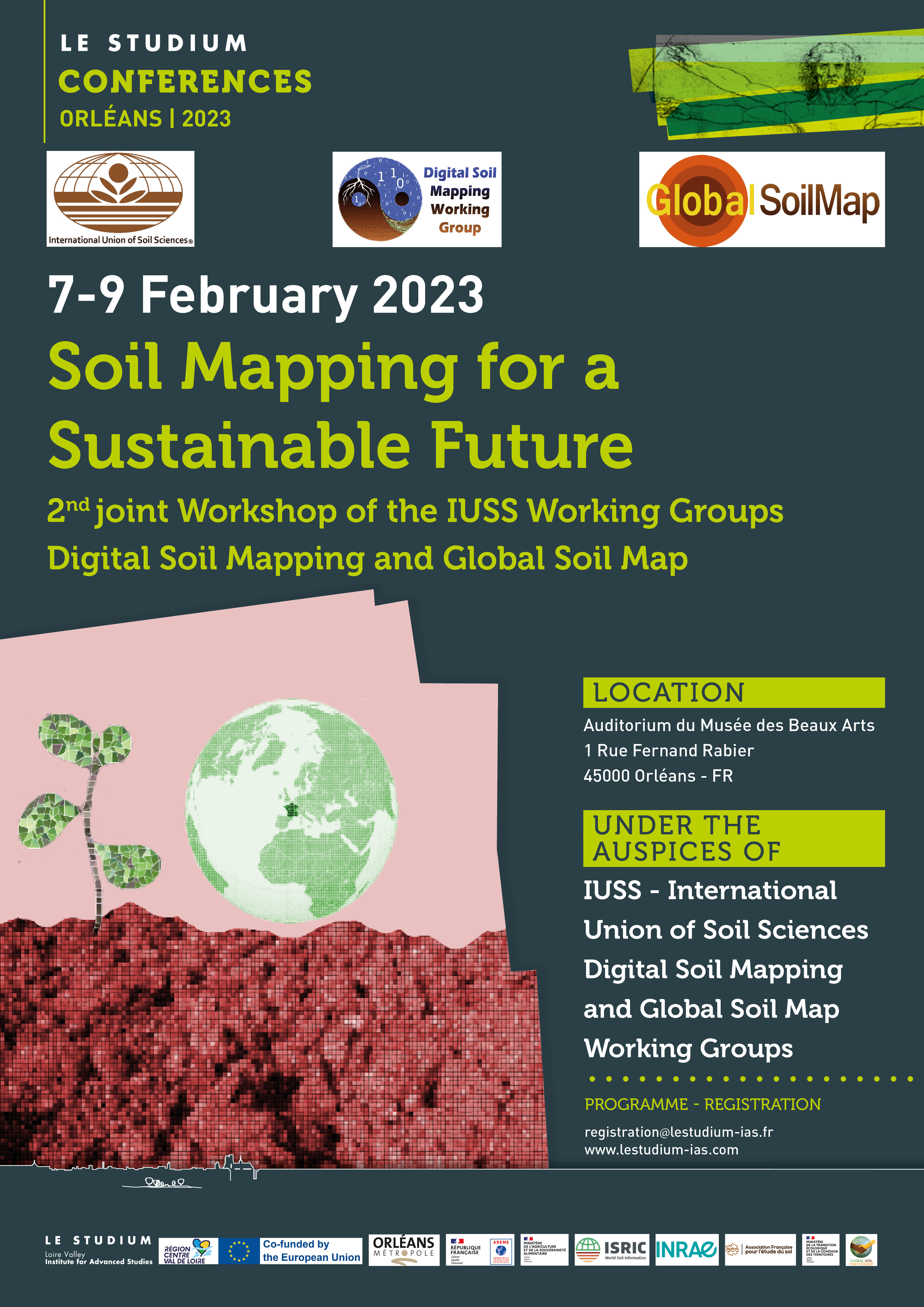 This conference will be hosted by le STUDIUM Institute for advanced studies (Orléans, France). It will bring together the International Union of Soil Sciences Working Groups ‘Digital Soil Mapping’ and ‘Global Soil Map’.
