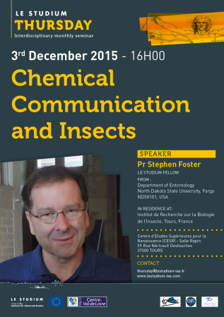 Communicating via chemicals is probably the oldest and most widespread form of communication amongst organisms, being present in simple unicellular organisms, such as bacteria, through to more complex multicellular organisms, such as plants and animals. Chemical messages between organisms are extraordinarily diverse in structure, ranging from simple common molecules, such as carbon dioxide, through to highly complex polymers, such as proteins. These messages can convey information about the sender to a receiver unintentionally or intentionally, with the benefits from reception of the message apparently accruing to both sender and receiver or just to one of them. In insects, the most diverse group of animals on the planet, chemical communication is especially important and widespread, being used for a large variety of functions, such as mate recognition and location, food finding, defense, kin (relatedness) recognition and organization of sociality (i.e., in insects that must live together to survive). In this talk, I will give a broad overview of the role of chemical communication in the lives of insects, as well as discussing some of the work we have been conducting at Tours.