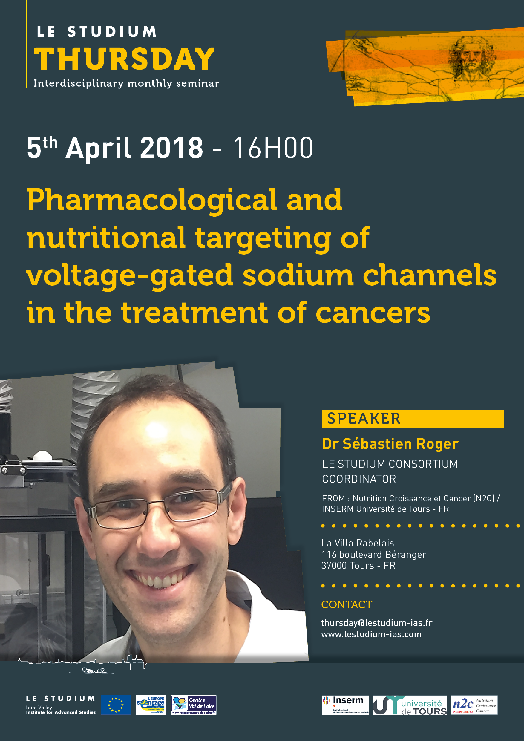 In collaboration with international partners, and in the context of Le Studium Consortium, we develop a project joining concepts and techniques from cell biology, physiology, biophysics, medicinal chemistry, anaesthesia, surgery and oncology. This project aims at developing a better understanding of molecular mechanisms by which NaV channels are involved in carcinogenesis and metastatic progression, and at proposing NaV as new pharmacological and nutritional targets for anticancer treatments.